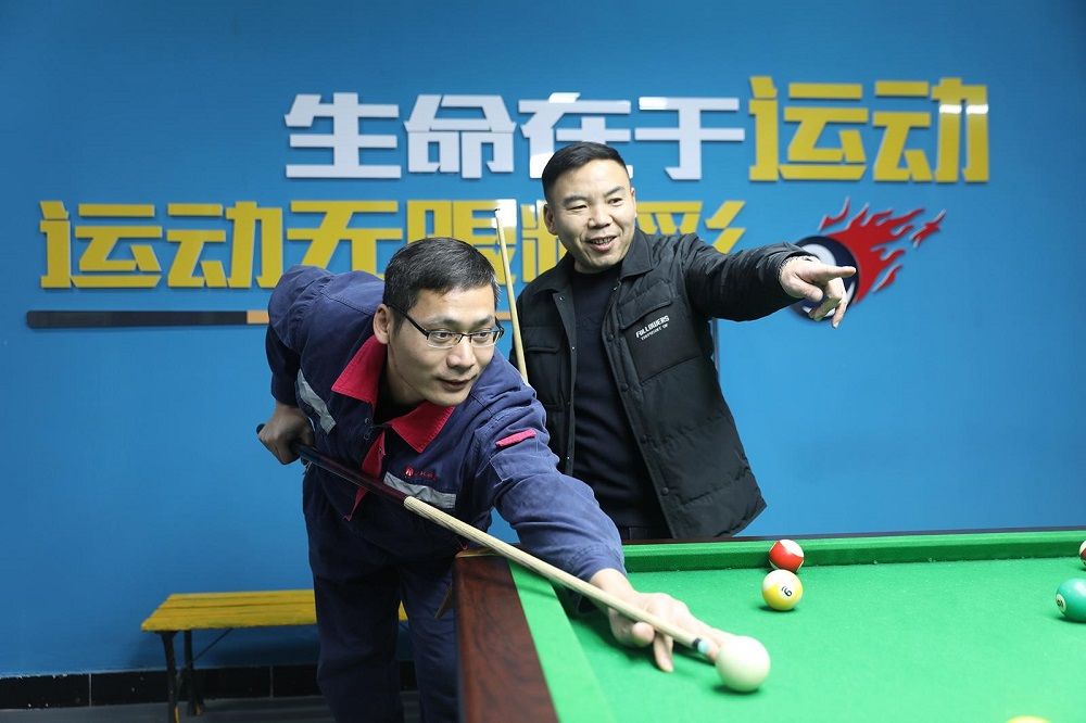 下班后,袁店二礦職工在活動(dòng)中心休閑娛樂。(王連生 攝)
