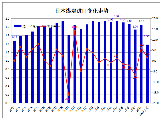 據(jù)日本財(cái)務(wù)省(Ministry of Finance Japan)發(fā)布的海關(guān)商品進(jìn)出口貿(mào)易統(tǒng)計(jì)數(shù)據(jù)顯示,2022年1-8月,日本煤炭進(jìn)口量累計(jì)為1.38億噸,比上年同期增加203.0萬噸,同比增長1.5%。其中,9月份煤炭進(jìn)口1491.9萬噸,同比減少8.9%,環(huán)比下降14.0%。