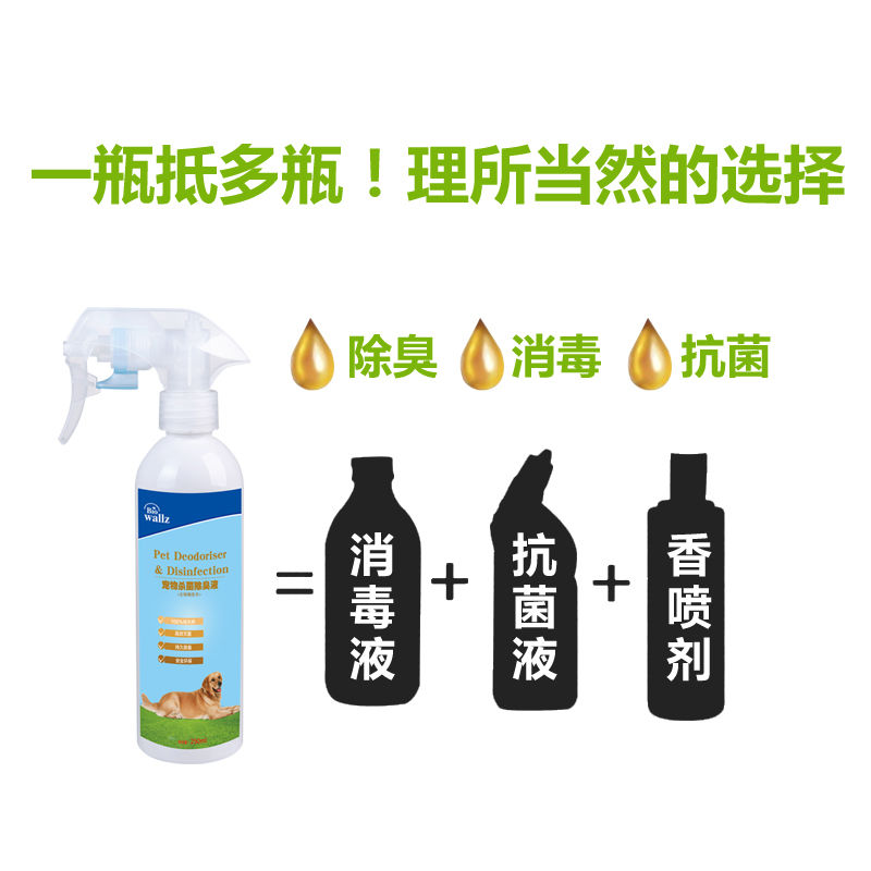 wallz 寵物殺菌除臭液,利用寵物專(zhuān)用生物酶及植物提取液降解尿氨、分解氨氣、硫化氫、甲硫醇、甲硫醚等惡臭物質(zhì),分解成無(wú)毒無(wú)害的物質(zhì),廣譜殺滅細(xì)菌、病毒、霉菌、真菌等,并抑制腐敗病原微生物生長(zhǎng)。本產(chǎn)品含有純天然生物活性物質(zhì),高效殺菌,持久祛味,綠色環(huán)保,人畜無(wú)害,提高寵物居室環(huán)境空氣質(zhì)量,是保持您和寵物健康的最佳選擇。