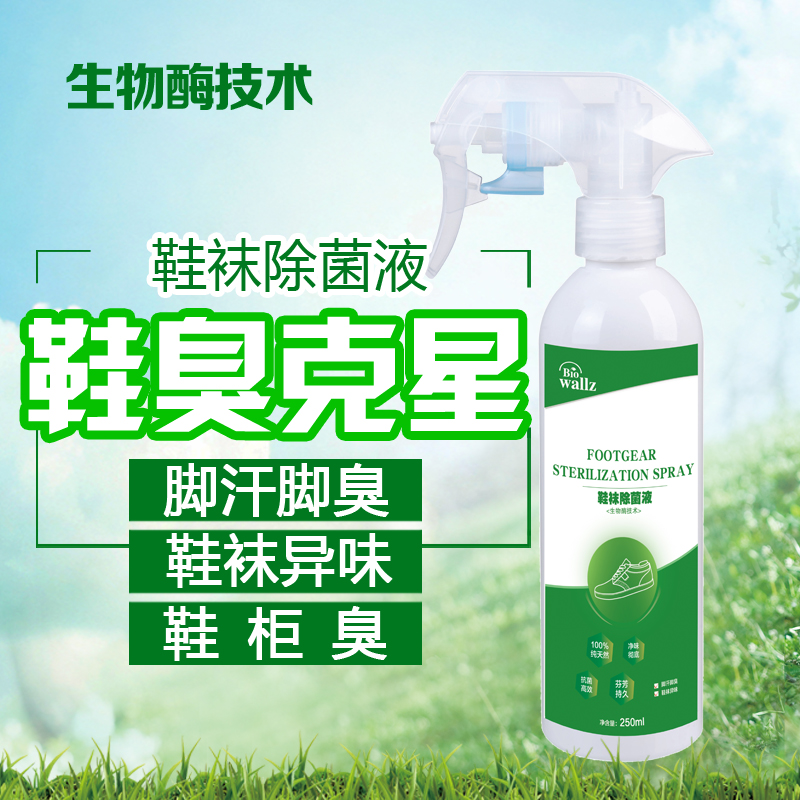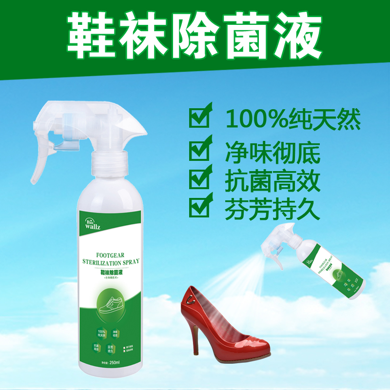 wallz 鞋襪除菌液,利用專(zhuān)用生物酶及植物提取液降解汗液、廣譜殺滅細(xì)菌、病毒、霉菌、真菌等各種頑固細(xì)菌,并抑制產(chǎn)生臭味的微生物生長(zhǎng)。本產(chǎn)品只含有純天然生物活性物質(zhì),高效殺菌,持久祛味,綠色環(huán)保,除菌效果顯著,并有效預(yù)防接觸性腳氣感染,使足部干爽舒適且氣味清香,是您足部健康的最佳選擇。